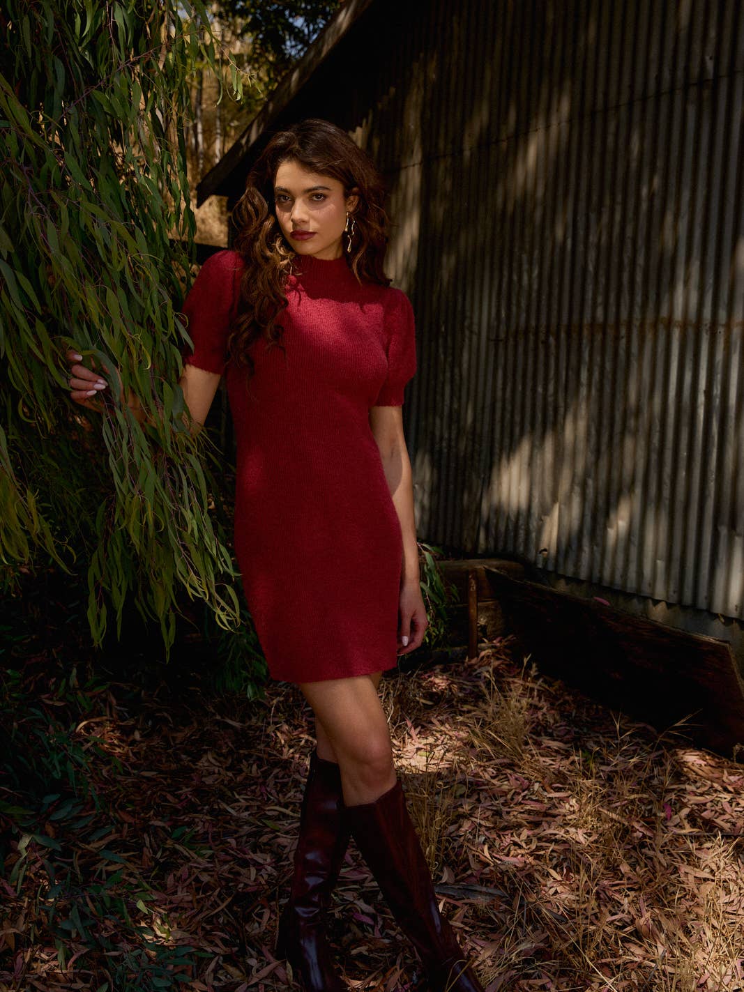 Unit price / perCozy, feminine, and effortlessly elegant — this crimson knit dress is a must-have for the season. Featuring delicate puff sleeves and a flattering fitted silhouette, it combines warmth with timeless style.