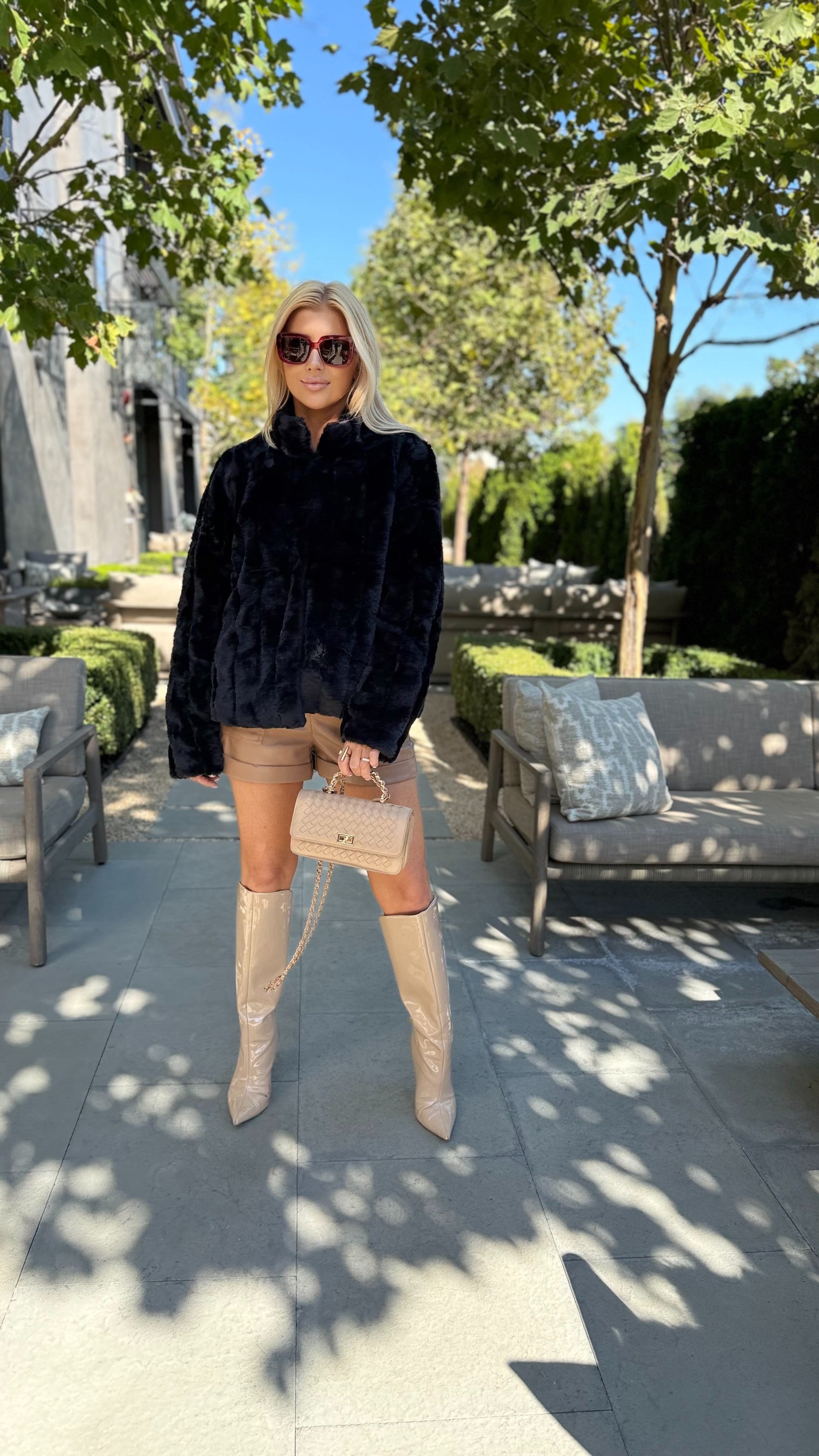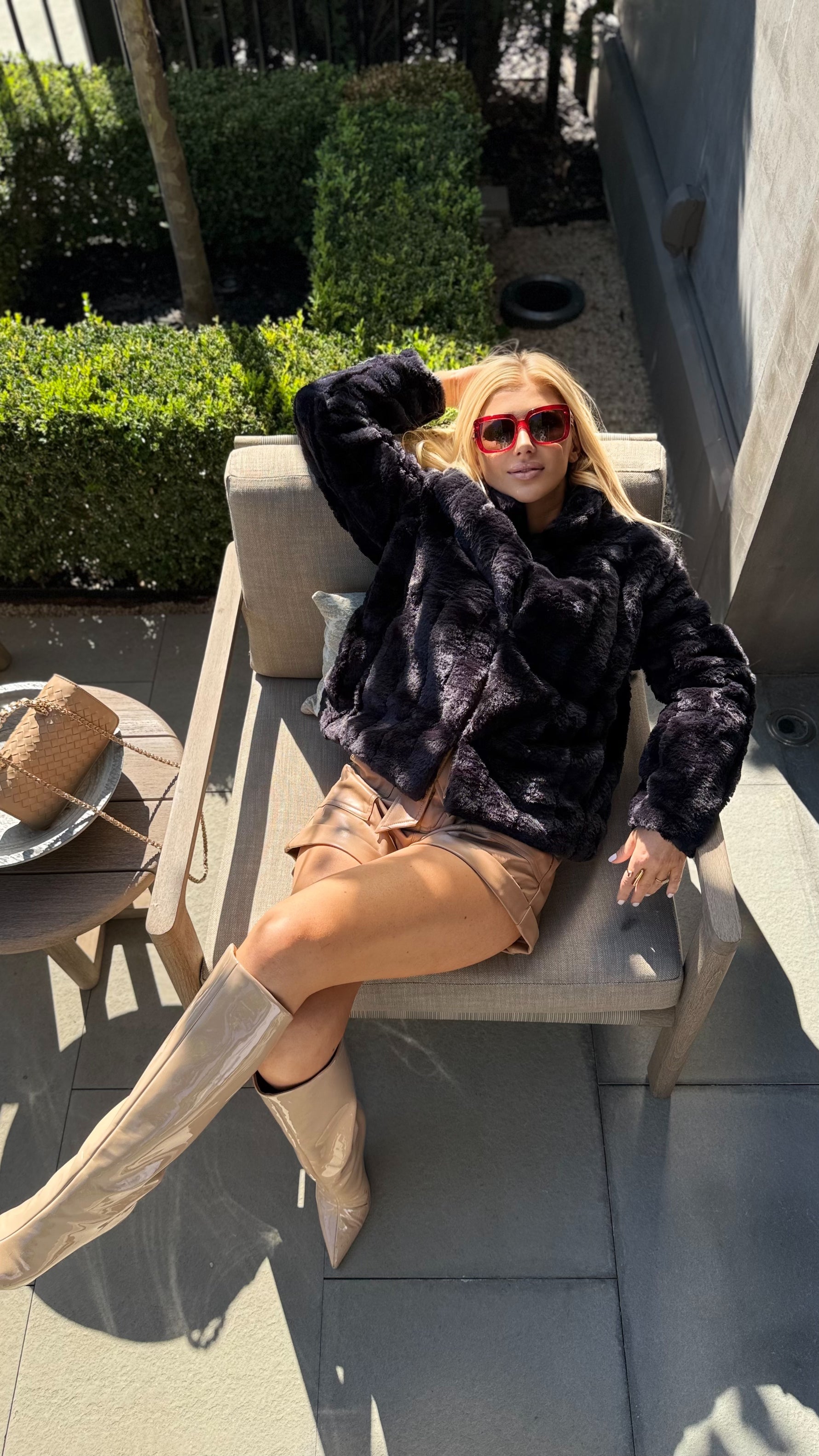 Unit price / perSoft, plush, and effortlessly chic — our Noir Luxe Faux Fur Jacket is the definition of modern elegance. Designed in a deep black shade that radiates sophistication, this short fur jacket adds a touch of glamour to any look. Perfect for chilly days when you still want to look polished and stylish.