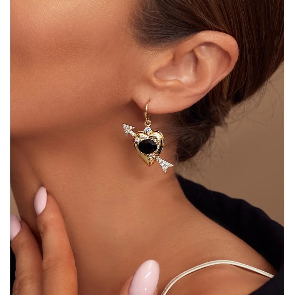 Shot an Arrow Through My Heart Gold Heart Earrings