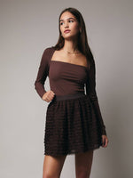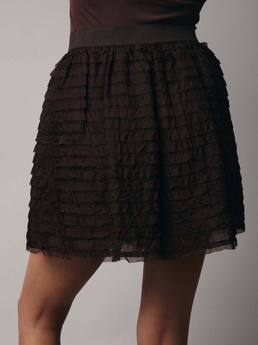 Unit price / perFeminine and flirty with a touch of edge — this chocolate textured mini skirt adds effortless charm to any look. Designed with soft layered ruffles and a comfortable elastic waistband, it moves beautifully with every step while flattering your silhouette.