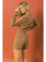 Unit price / perA soft touch sweater romper featuring front button detail, long sleeve, and ribbed knitting waist band