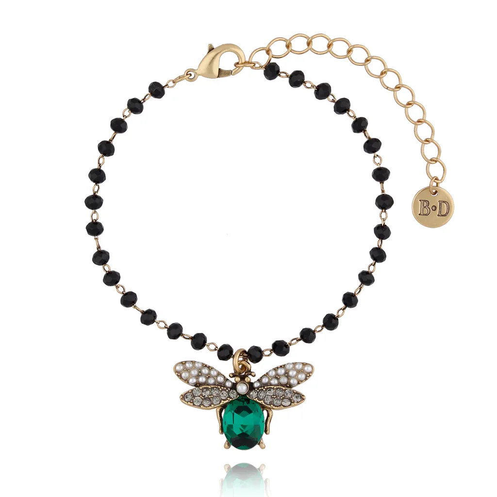 Unit price / perBracelet with crystal insect, made of brass, decorated with glass crystals and zircons.