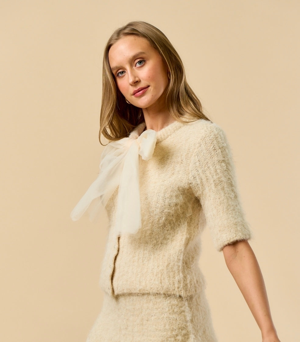 Unit price / perA soft, feminine knit with the dreamiest oversized bow. This fuzzy cream top brings elegance to any look — cozy, lightweight, and effortlessly chic. Style it for holidays, brunch, or a night out for that timeless, romantic touch.